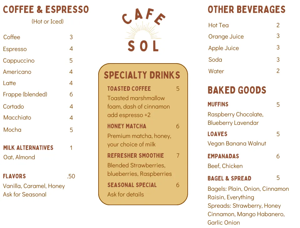 Drinks Menu